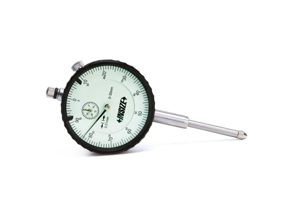 Číselníkový úchylkoměr s dlouhým zdvihem od INSIZE. Na výběr jsou 4 varianty s rozsahem měření 20 mm a 30 mm. Dodáváno s mezními ukazateli a upínací svorkou.