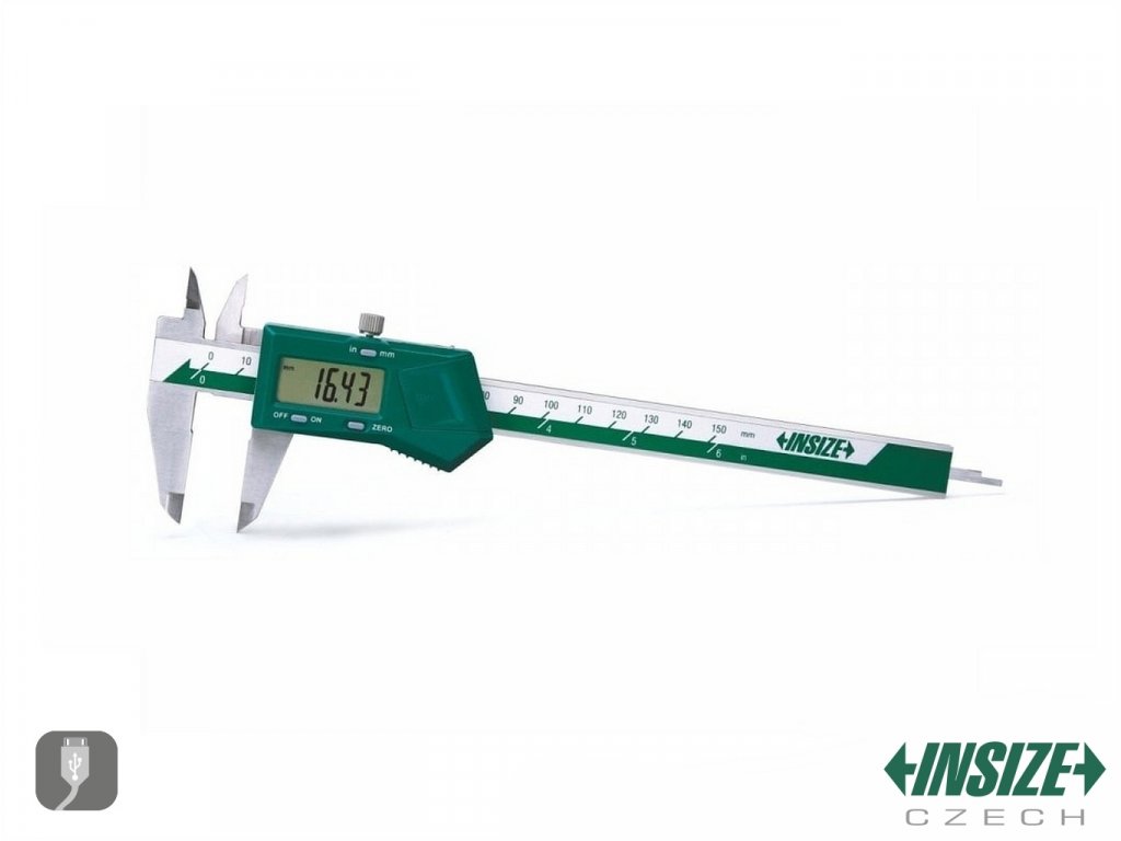 Nejprodávanější posuvné měřítko od INSIZE s rozsahem měření 0-150 mm a s dělením po 0,01 mm. Délka spodních ramen je 40 mm. S výstupem dat a hloubkoměrem. Bez posuvového kolečka.