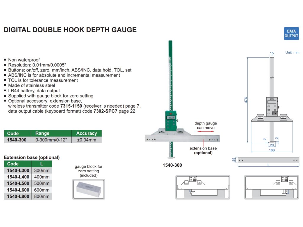| 1540-300 | 0-300 mm | ± 0,04 mm | 160 mm |
