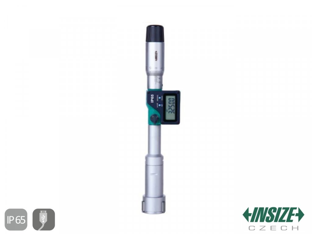 Dutinoměr (třídotekový, mikrometrický) typu C s rozsahem měření 20-25 mm a s dělením po 0,001 mm od INSIZE. S nastavovacím kroužkem o ø 25 mm, prodlužovacím nástavcem v délce 150 mm a ochranou IP65. Výstup dat.