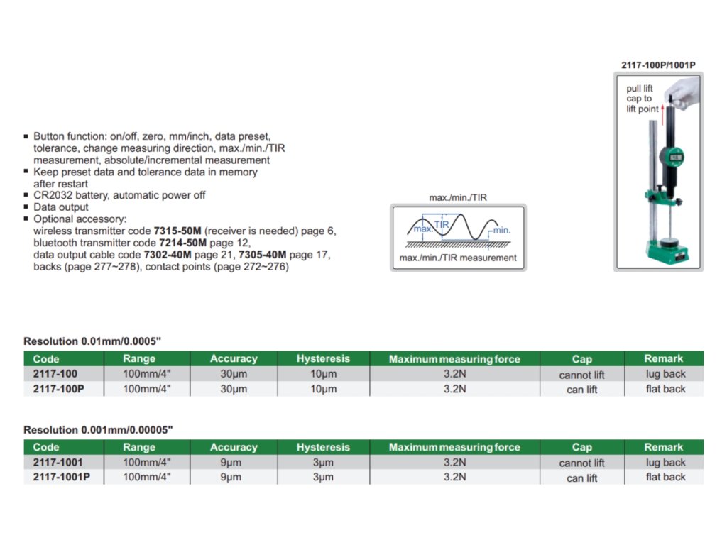 Rozsah: 100 mm / 4", Dělení: 0,001 mm / 0,00005", Zadní strana: S očkem