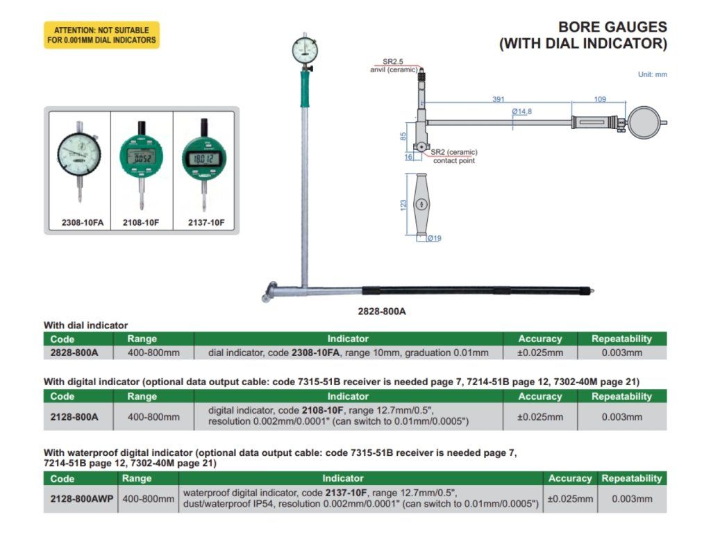 Součástí dutinoměru je číselníkový úchylkoměr. Bližší specifikaci úchylkoměru naleznete na našem e-shopu pod číslem 2308-10FA.