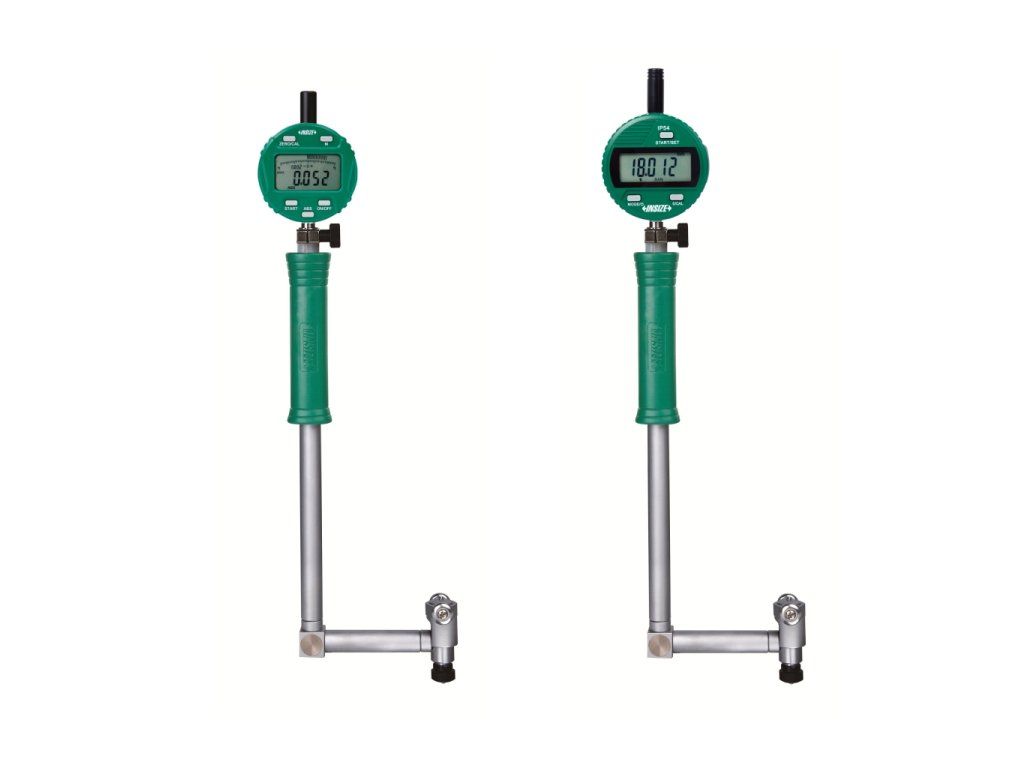 Dutinoměr s digitálním úchylkoměrem od INSIZE. Na výběr je 8 variant s rozsahem měření 35-60 mm, 50-160 mm, 160-250 mm a 250-450 mm. Má výstup dat.