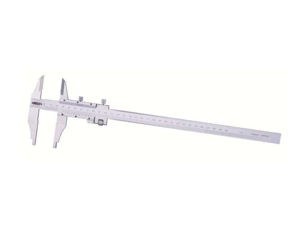 Mechanické (analogové) posuvné měřítko s horními rameny pro vnější měření od INSIZE. Na výběr jsou 2 varianty s rozsahem měření 0-250 mm a 0-300 mm.