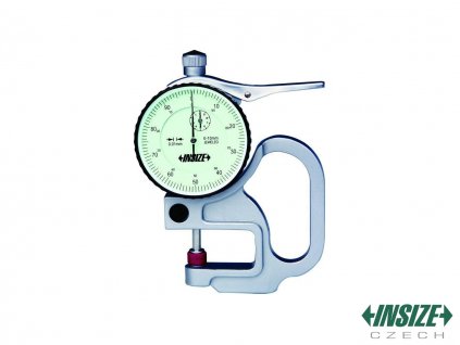 Číselníkový tloušťkoměr o rozsahu měření 0-10 mm od značky INSIZE. S dělením 0,05 mm a přesností ± 0,1 mm. L=35 MM.