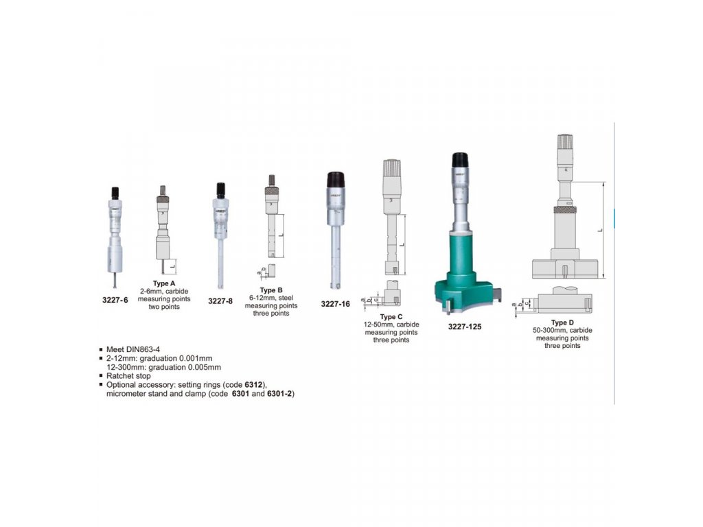 Třídotekový dutinoměr 30-40/0,005 mm, typ C - karbidové doteky INSIZE