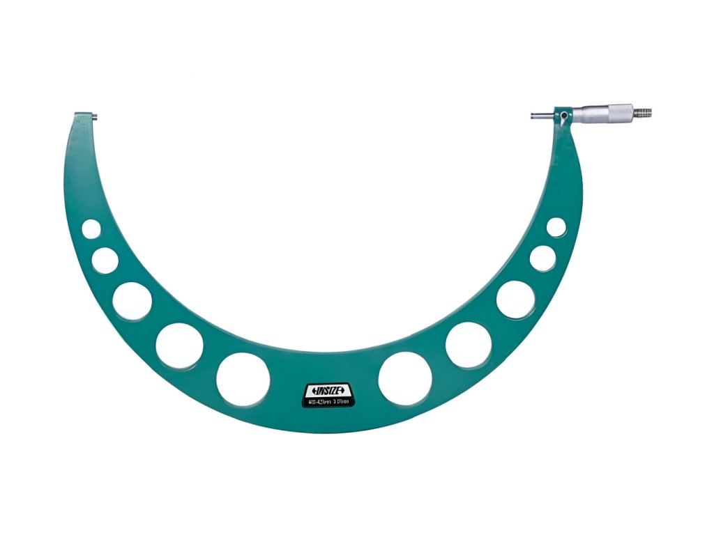Mechanický mikrometr s plechovým rámem od INSIZE. Na výběr je 8 variant s rozsahem měření 300-325 mm, 325-350 mm, 350-375 mm, 375-400 mm, 400-425 mm, 425-450 mm, 450-475 mm a 475-500 mm.