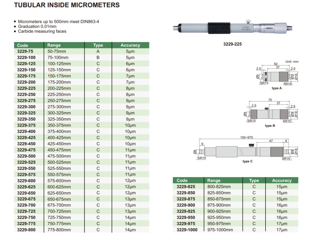 Mikrometrický odpich INSIZE v rozsahu 525-550 mm s dělením 0,01 mm a karbidovými doteky.