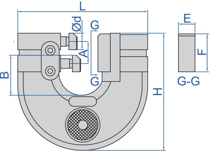 | Produkt | Rozsah | Rovnoběžnost měřicích ploch | L | A | B | E | F | H | Ød |