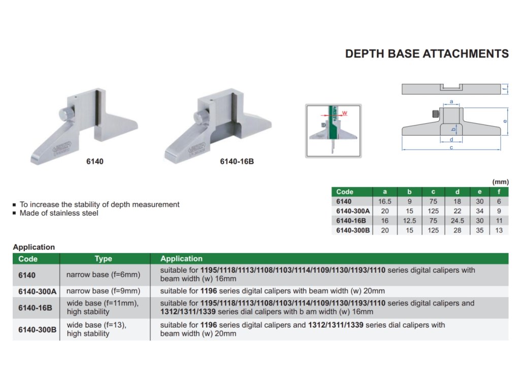 Základna/nástavec pro zvětšení stability měření hloubky od INSIZE. Na výběr jsou 4 varianty s úzkou nebo širokou základnou.