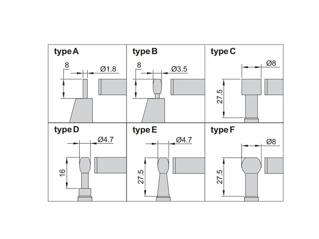 - C (válcový dotek o Ø 8 mm a délce 27,5 mm)
