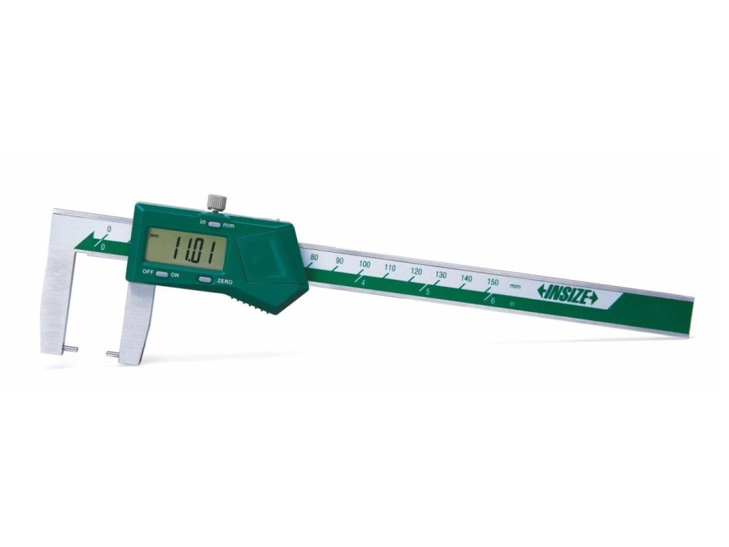 Digitální posuvné měřítko s vnějšími bodovými rameny pro měření tloušťky stěn od INSIZE. Na výběr je 6 variant s rozsahem měření 0-150 mm, 0-200 mm a 0-300 mm. Má výstup dat.