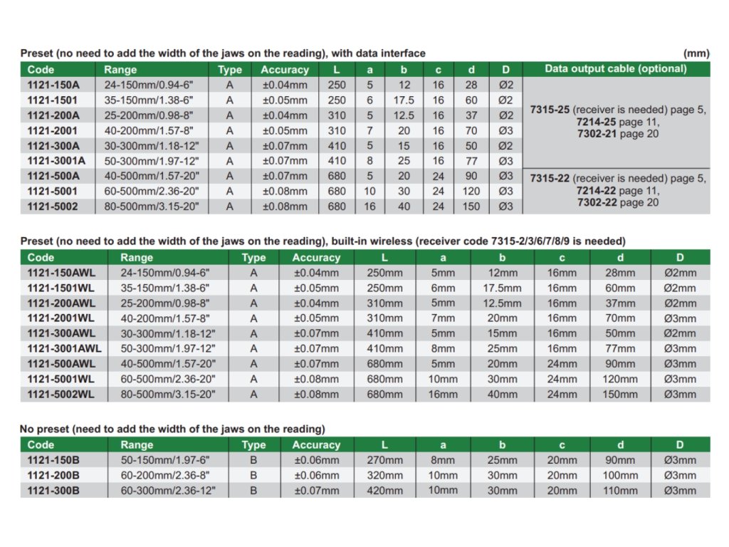 | 1121-150A | 24-150 mm | ± 0,04 mm |