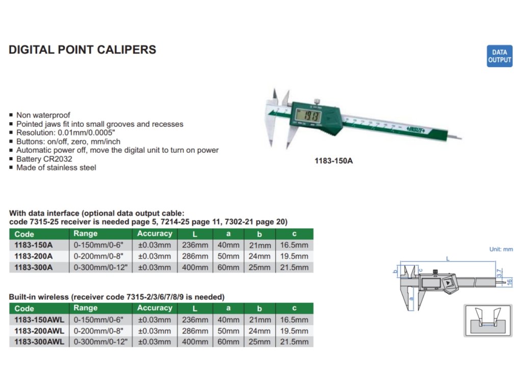 | 1183-150AWL | 0-150 mm | 40 mm |