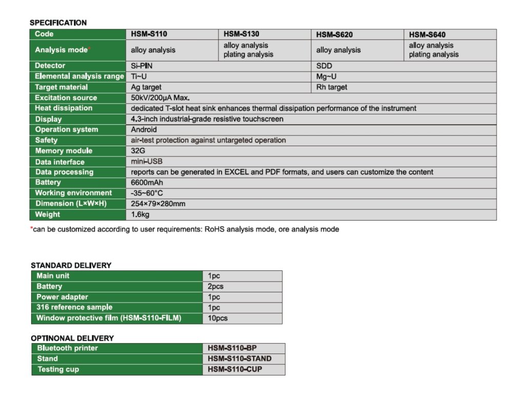 Přenosný rentgenový spektrometr HSM-S110 INSIZE