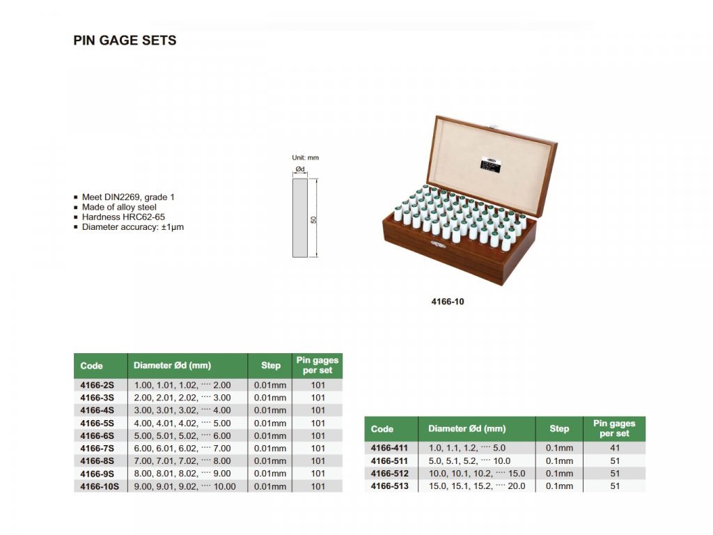 Sada válečkových měrek - 51 ks od INSIZE s průměrem 15,50-16,00 mm, dle DIN 2269, třída 1. Tvrdost HRC62-65, přesnost ±1 µm.