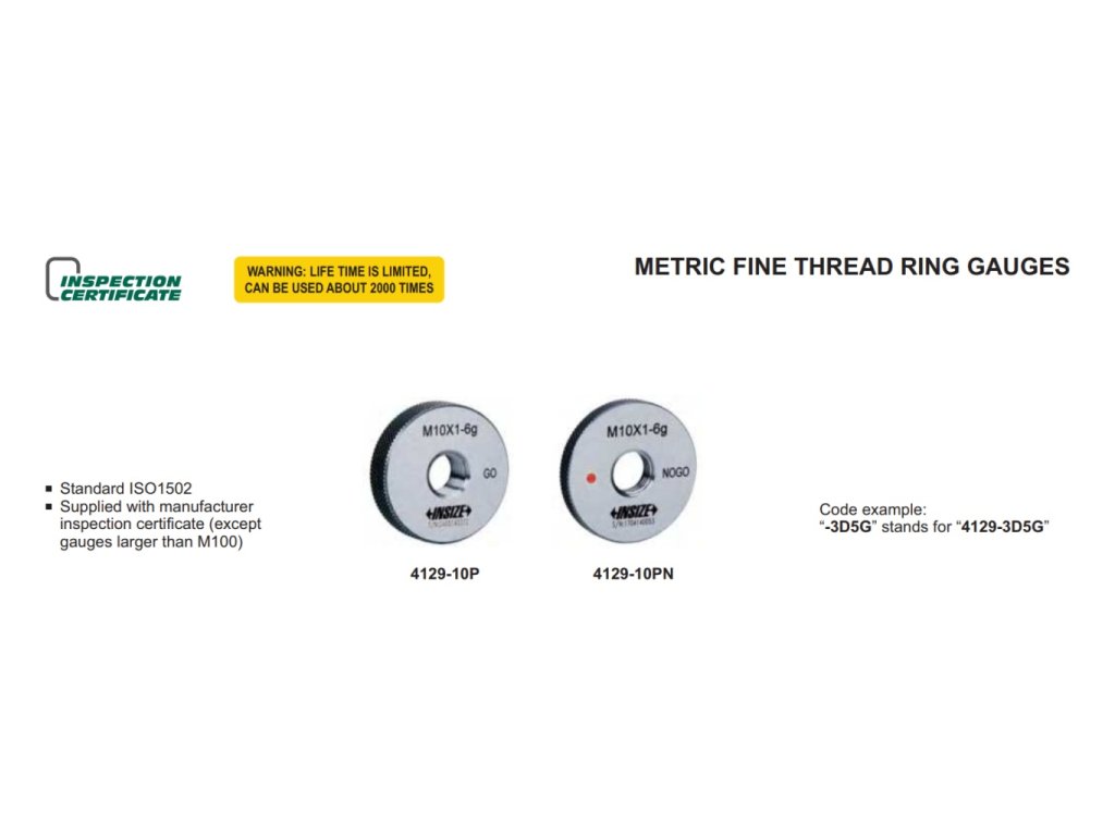 Metrický závitový kalibrační kroužek s jemným stoupáním dobrý INSIZE s možností výběru velikosti M24 až M34, s toleranční třídou 6g.