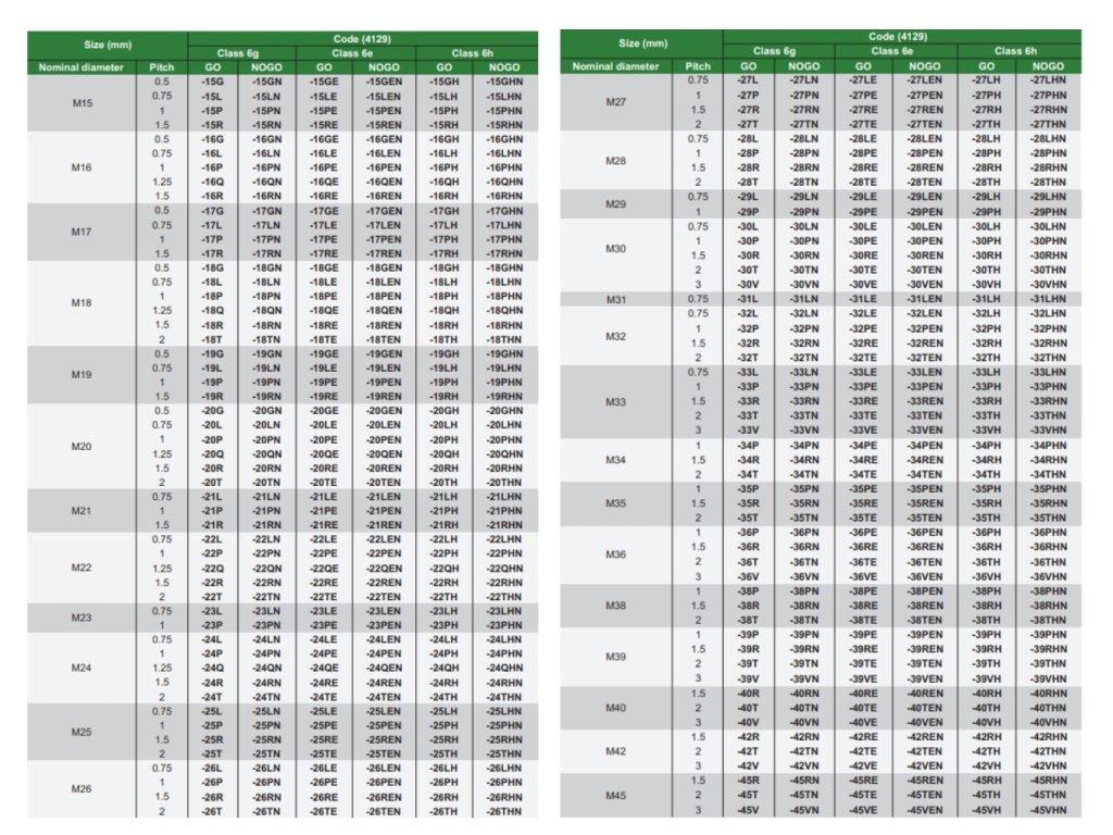 | 4129-28R | 28 mm | 1,5 mm | 6g | GO | M28×1,5-6g | |
