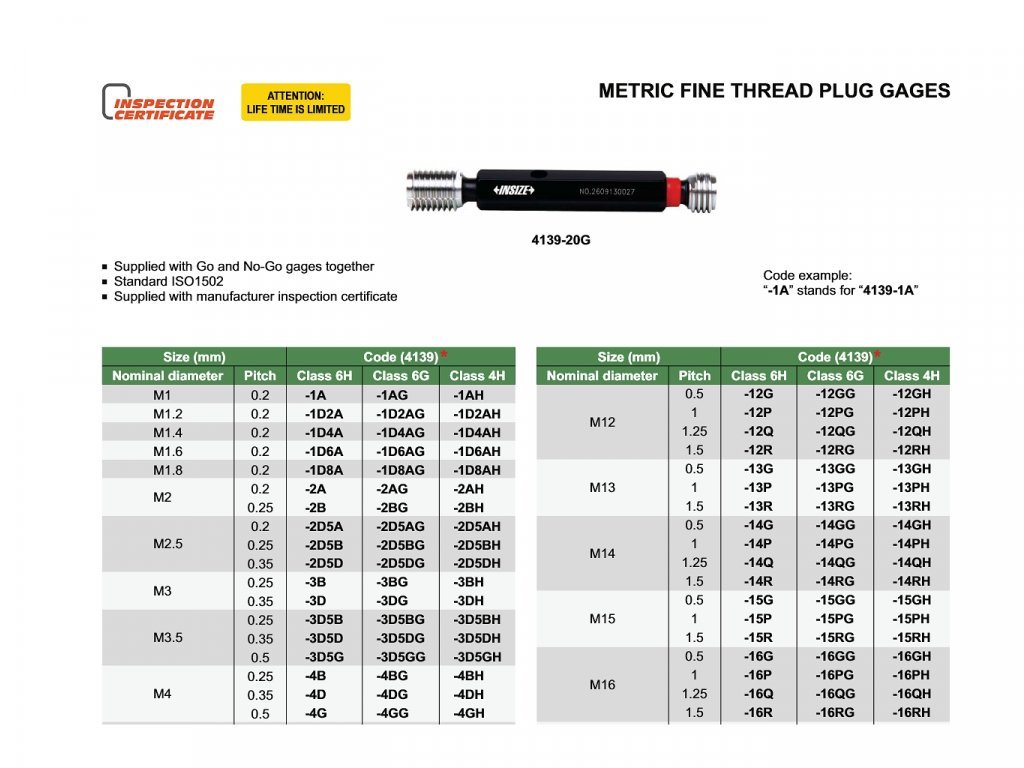 Vysoce kvalitní závitový kalibr od společnosti INSIZE. Dobrý i zmetkový v jednom. Třída 6G. Norma dle ISO 1502.